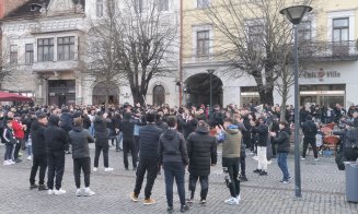 Suporterii "studenților" s-au strâns în Piața Unirii înainte de partida cu rivala din oraș.