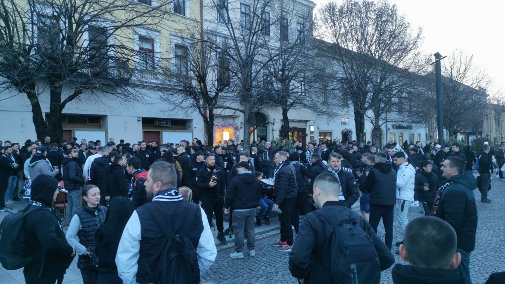 Sute de suporteri ai Universității s-au strâns în centrul orașului pentru a pregăti partida. Timp de minute bune, cei prezenți au cântat, iar cât mai curând se vor îndrepta spre stadion, unde va avea loc disputa.