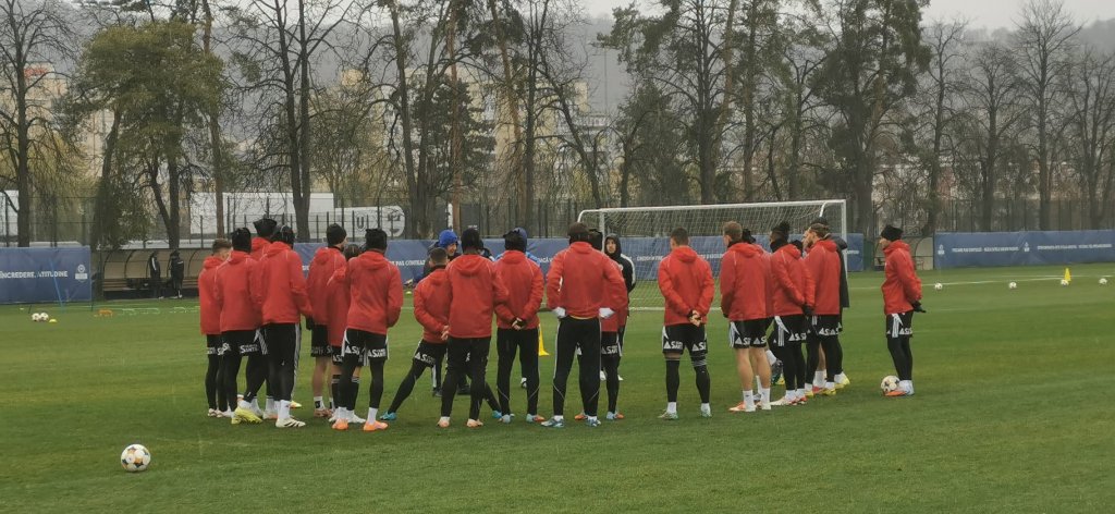 Sub privirile antrenorului principal, care a supervizat de la o oarecare distantă, jucătorii au început cu două scurte exerciții de pasare.