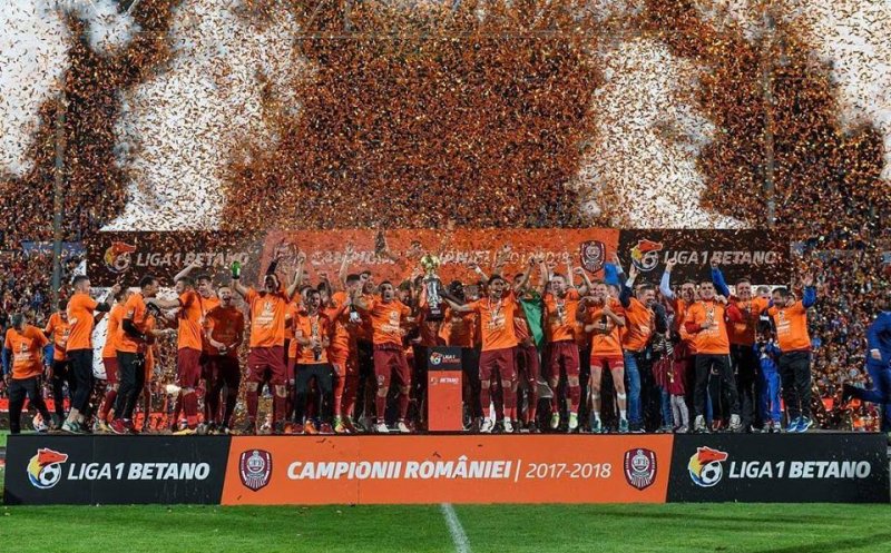Formaţia CFR Cluj a câştigat titlul de campioană a României pentru a patra oară în istoria sa, după ce a învins FC Viitorul, scor 1-0, în ultima etapă a play-off-ului Ligii I. CFR Cluj a câştigat titlul cu doar un punct avans faţă de FCSB, care s-a impus, tot duminică, scor 1-0, cu Astra Giurgiu.