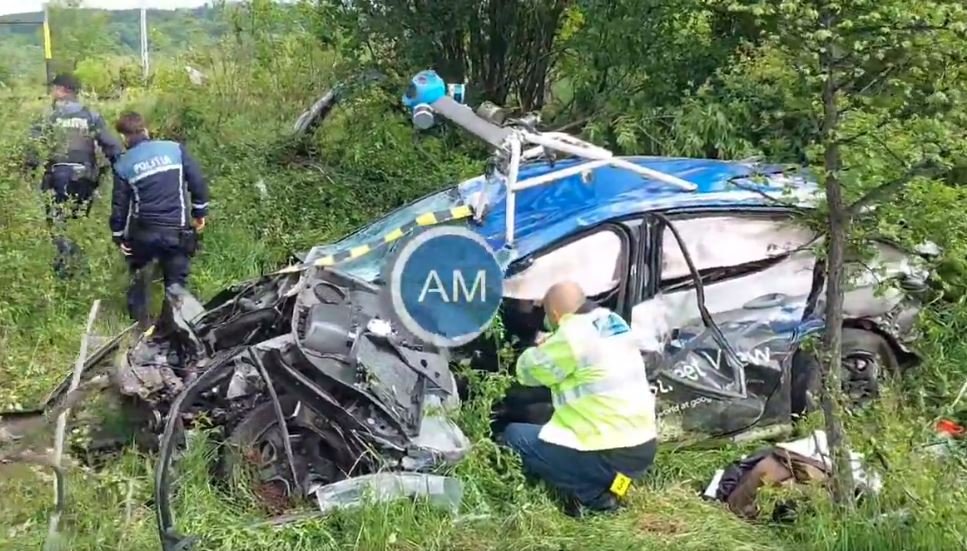 În urma impactului, maşina Google Street View a fost aruncată în câmp.