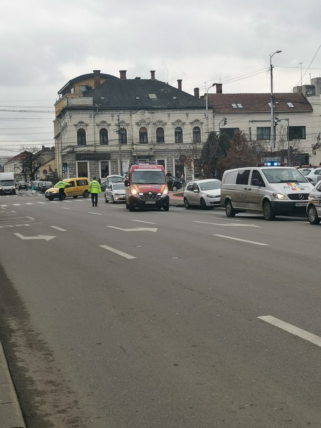 Un pieton a fost lovit de o mașină, luni, în timp ce traversa pe o trecere de pietoni în Piața Cipariu din Cluj-Napoca.