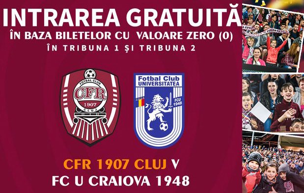 CFR Cluj va lupta cu U Craiova 1948 pentru un loc în preliminariile Conference League. Meciul de baraj este programat joi, 1 iunie, de la 20:30, în Gruia, iar inițial conducerea clubului ardelean a anunțat că intrarea va fi liberă.