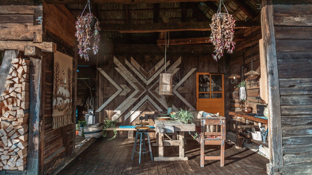 Casa Cochilia Nucului a fost recondiționată cu materiale naturale, păstrând lemnul vechi și frumusețea tradițională specifică.