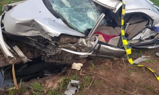 Două dintre cele cinci persoane implicate într-un accident la Huedin au murit. O mașină cu volan pe dreapta a intrat pe contrasens în alta care circula regulamentar.