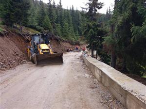 Lucrările constau în plombări cu mixtură asfaltică, burduşiri, acostamente, şanţuri, decolmatări de podeţe.