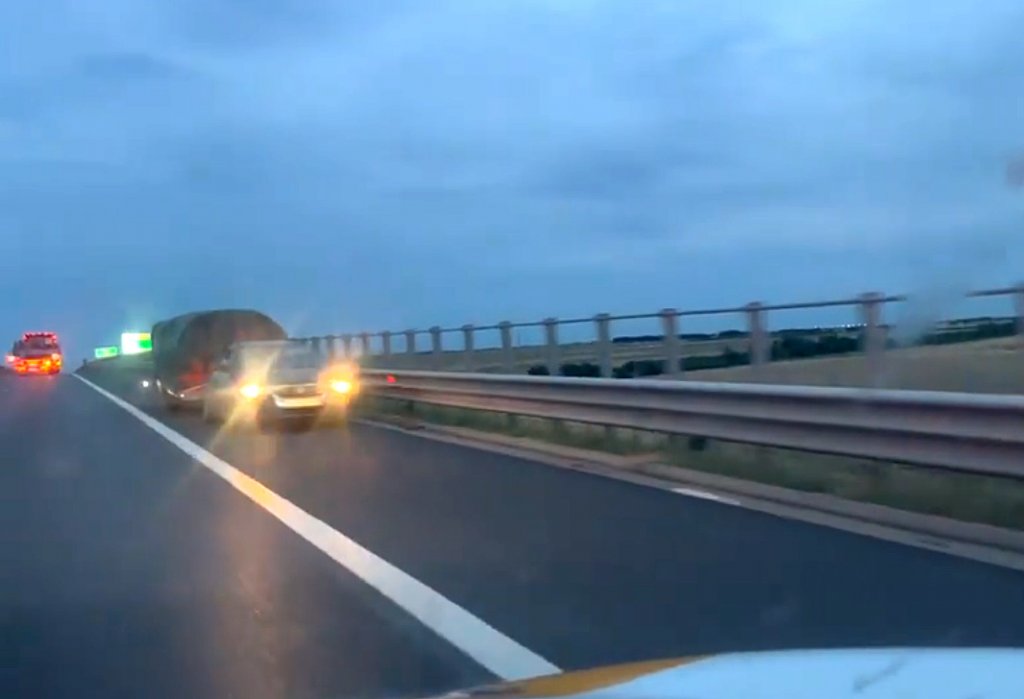 Inconștiență pe autostradă: Mașină surprinsă de un șofer din Alba, pe contrasens, pe banda de urgență.