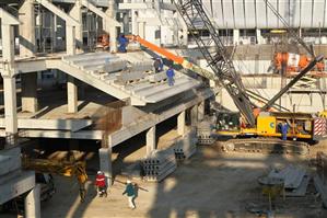 Oficialii companiei care execută lucrările de conservare la Sala Polivalentă spun că pe şantier au dislocat 31 de angajaţi şi că imediat după semnarea contractului cu Primăria Cluj-Napoca a trecut la relizarea organizării de șantier.