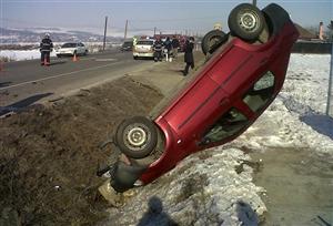 Un accident rutier a avut loc miercuri seara, pe DN1E60, în afara localității Mărtinești din județul Cluj. Un șofer a pierdut controlul mașinii și a căzut de pe un cap de pod.