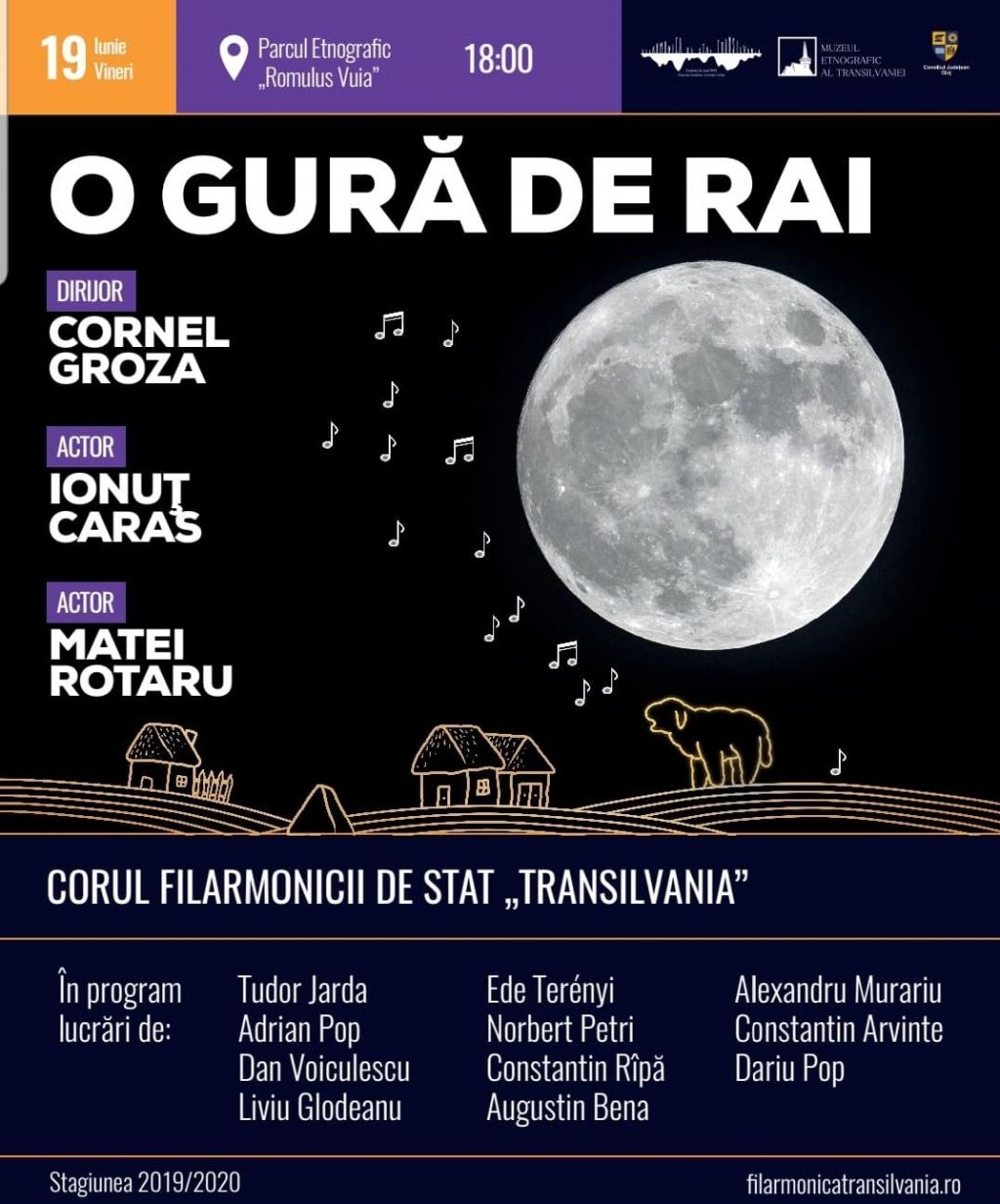 Filarmonica de Stat Transilvania, în colaborare cu Muzeul Etnografic al Transilvaniei organizează vineri, 19 iunie 2020, începând cu ora 18, un concert în Parcul Etnografic „Romulus Vuia”.