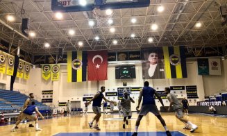 Jucătorii echipei clujene și-au început ședința de pregătire de dimineață în stația de bus smart din centrul orașului.