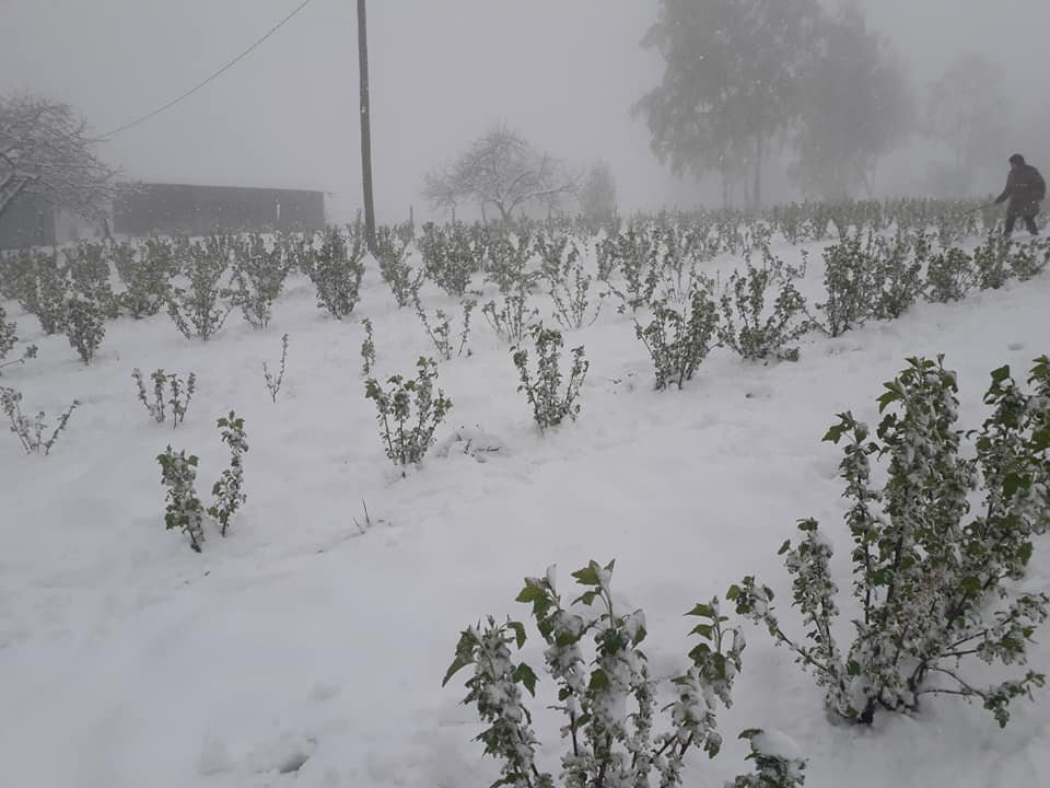 Ninsoarea de ieri strică culturile clujenilor. Coacăz înflorit, acoperit de zăpadă în Dealul Negru.