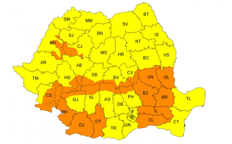 Torodată, în intervalul 10 aprilie, ora 12 – 10 aprilie, ora 23, va fi în vigoare un Cod Portocaliu - în zona joasă a județelor Mehedinți, Dolj și Olt vor fi intensificări puternice ale vântului cu rafale de 70...90 km/h. În Carpații Meridionali, Carpații de Curbură, Munții Banatului și local în Munții Apuseni vântul va sufla tare cu viteze de 70...85 km/h, iar la altitudini de peste 1700 m rafale vor fi de 85...120 km/h și va fi viscol puternic și vizibilitate foarte redusă, sub 50 m.