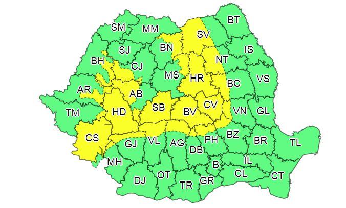 De asemenea, tot până miercuri dimineaţa, la ora 02.00, meteorologii au emis o atenţionare meteo COD GALBEN de ninsori importante cantitativ, strat consistent de zăpadă și viscol în zona montană. În intervalul menționat în zona montană vor fi ninsori importante cantitativ și se va depune strat consistent de zăpadă. Vântul va avea intensificări, cu viteze mai mari la altitudini de peste 1500 m, unde temporar rafalele vor depăși 80...90 km/h și va fi viscol.