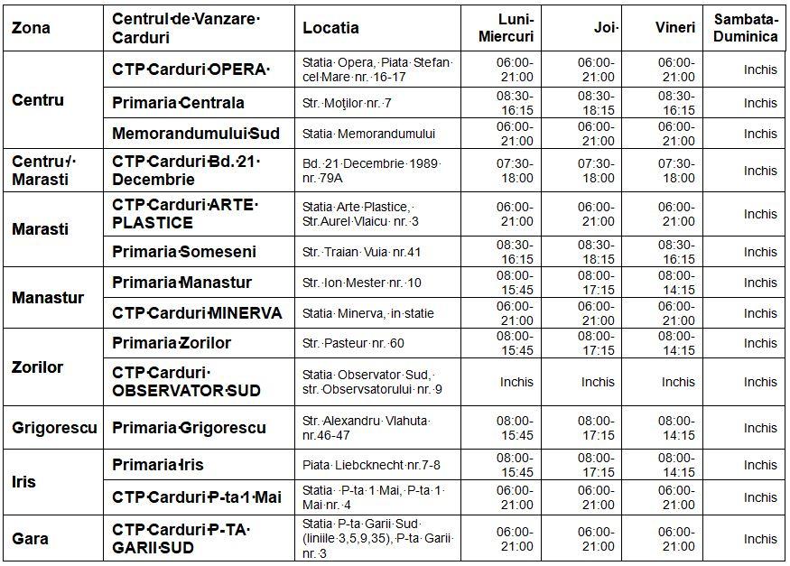 Cardurile de transport pot fi achiziționate, de luni până vineri, de la următoarele centre de vânzare: