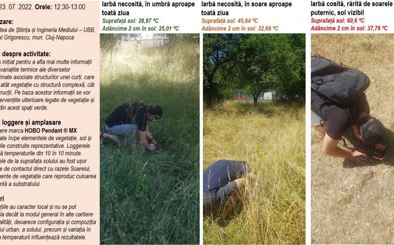 Studiu UBB: iarbă necosită la umbră 28,87 grade/ iarbă cosită la soare 60,6 grade