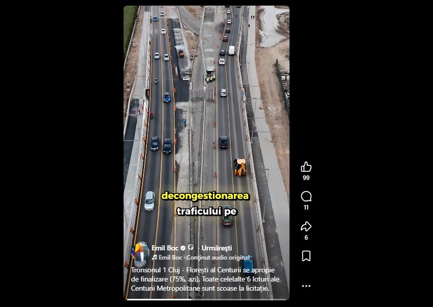 11:07 Primarul Emil Boc a făcut noi declarații de pe șantierul tronsonului în lucru din Centura Metropolitană: Cluj-Napoca-Florești.